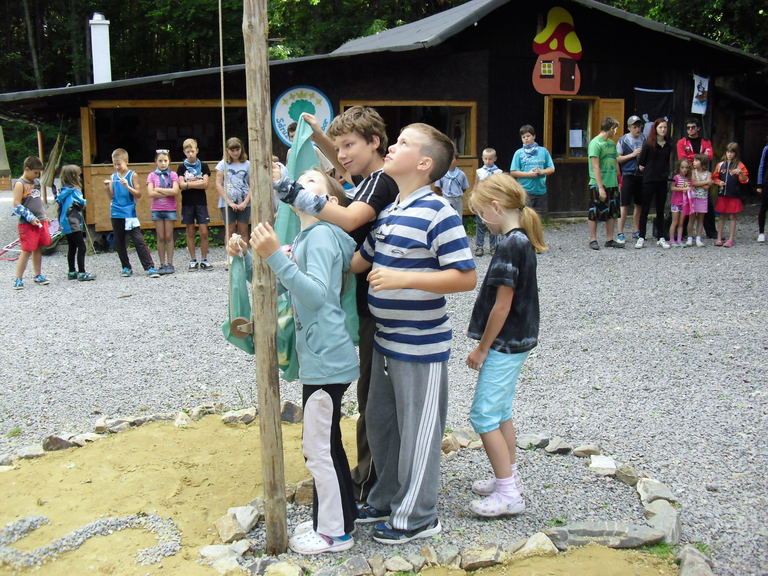Etapová hra je hlavní náplní všech turnusů. Snažíme se na našich táborech pomocí scének a kostýmů přiblížit dobové atmosféře. Mimo etapovou hru se samozřejmě děti podle počasí chodí koupat, učí se životu v přírodě, v kolektivu, práci s dřevem, keramickou hlínou, podnikáme výlety do Železných hor, ale např. musí i jednou za tábor pomáhat v kuchyni, loupat brambory, řezat dřevo apod.Další fotky