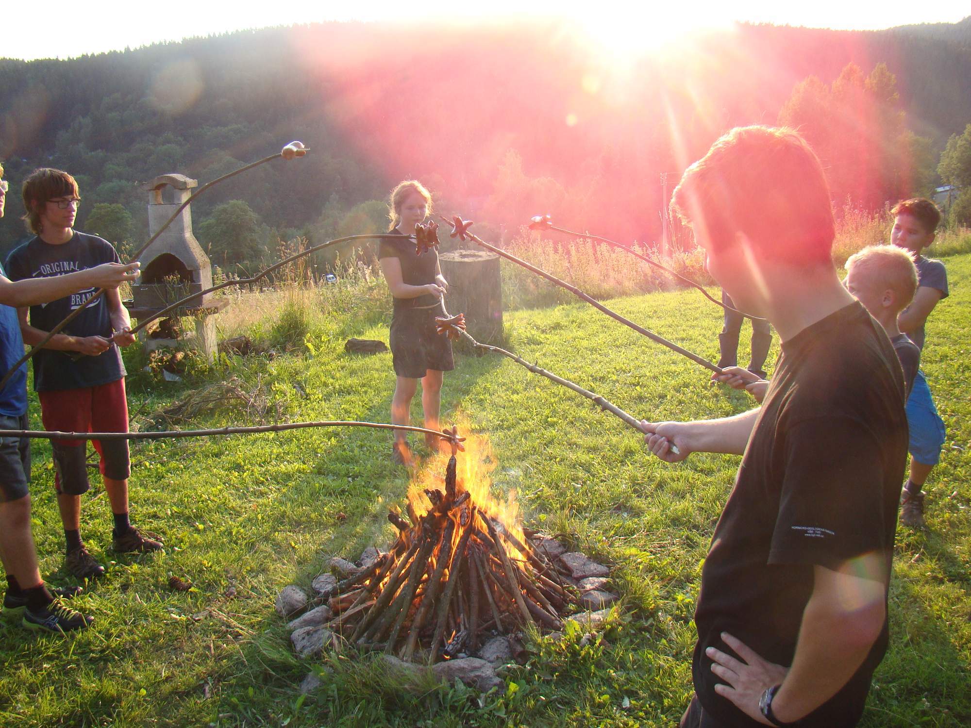 Náš táborový den je rozdělen do bloků, ve kterých střídáme astronomii, kosmonautiku a hry. Pokud naši táborníci chvíli sedí a nasávají nové informace, následuje nějaká pohybová hra, soutěž, nebo nějaká jiná aktivní činnost. Tradičně také do programu zařazujeme celodenní výlet, nejméně jedno celonoční pozorování, raketový den, několik nočních táborových her a samozřejmě táboráky. Když je velké horko, zajdeme se vykoupat k řece. Náš tábor žije a nikdo se tu nenudí. Na tábor za námi jezdí mnohé návštěvy - ti nejlepší přednášející astronomie a kosmonautiky, jaké známe. Ani letos to nebude jiné.Další fotky