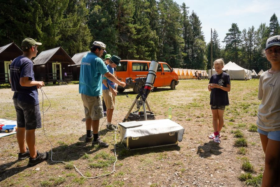 Náš tábor není jen o hvězdách – i když ty hrají hlavní roli! Jsme astronomický tábor, což znamená, že se věnujeme odborně zaměřenému programu: Přednášky na různá astronomická témata Odborné skupiny a astrokroužky podle úrovně znalostí a zájmu (od úplných začátečníků po pokročilé) Noční pozorování oblohy, práce s dalekohledy a orientace na obloze Zároveň však víme, že tábor má být hlavně o zábavě a týmovém duchu. Proto na našem táboře nechybí: Sportovní aktivity a táborové hry Logické a kreativní soutěže v týmech Večerní programy a společné zážitkyDalší fotky
