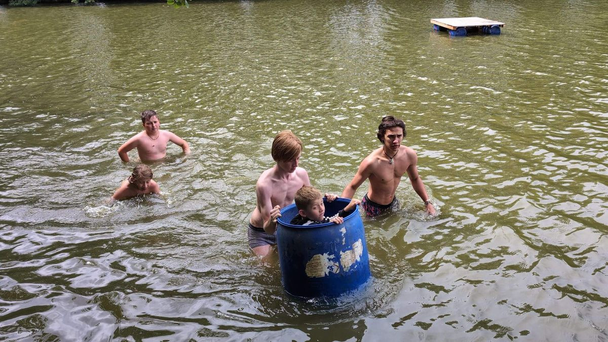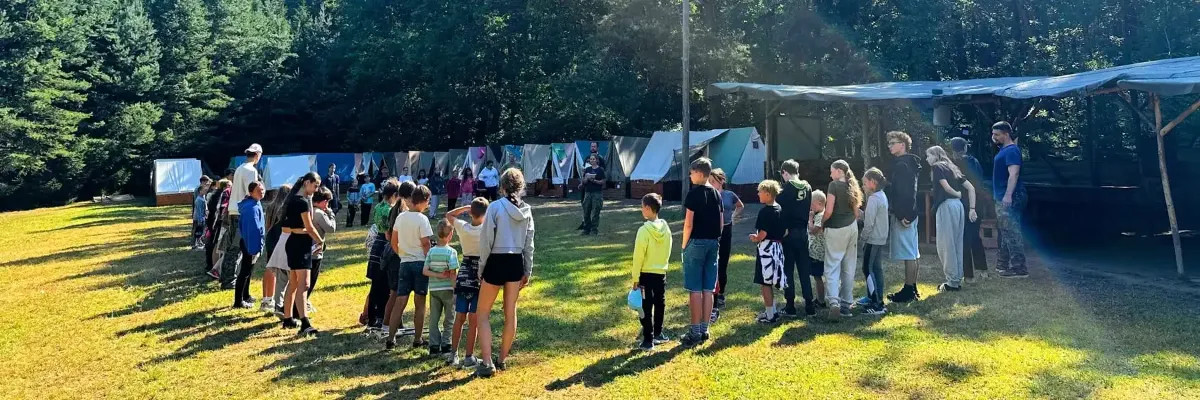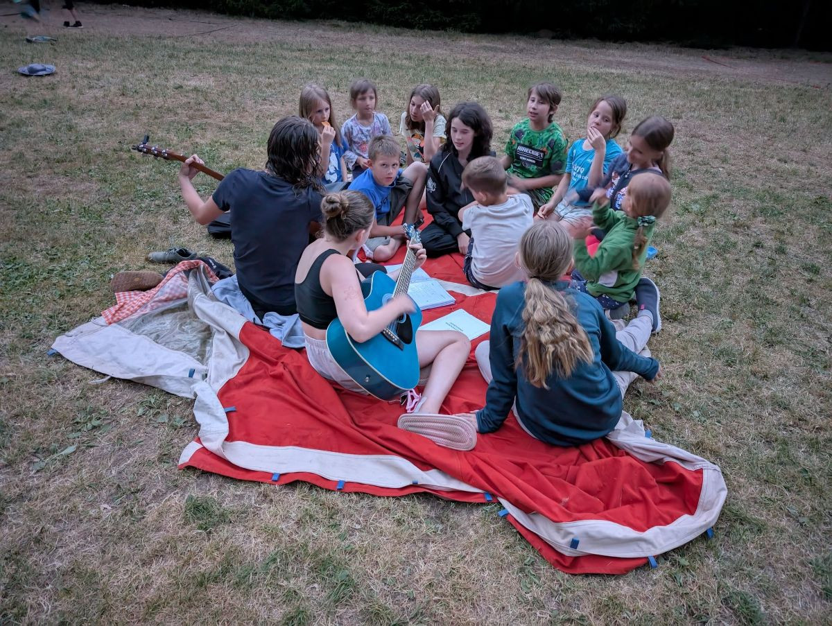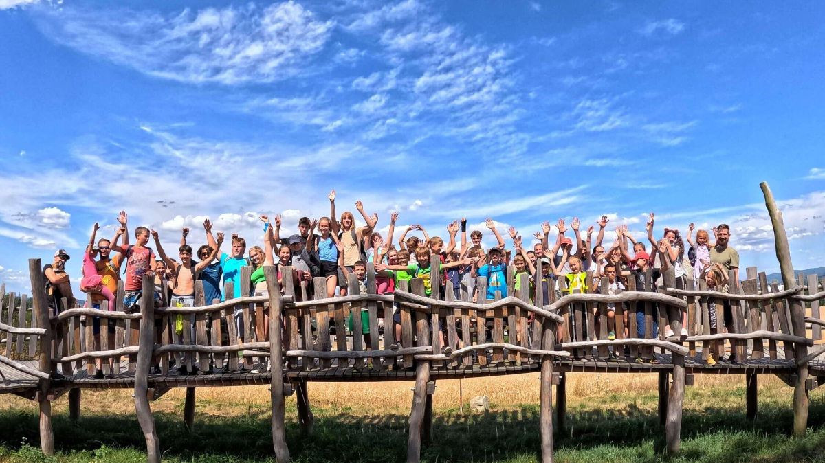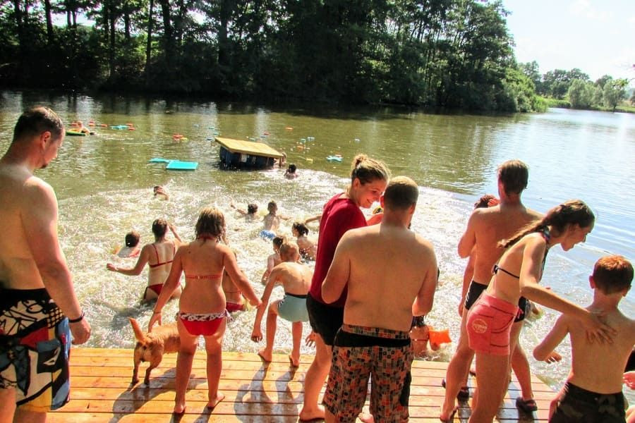 Klasický letní dětský tábor pro děti 6–15 let. Podsadové stany, les za zády, rybník na dosah, bez elektřiny a bez internetu. Dva týdny žijeme opravdu venku: vaříme na kamnech na dřevo, teplou vodu ohříváme v brutaru a večer sedíme u ohně.