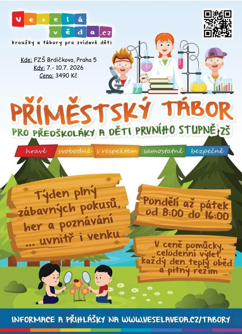 V létě 2026 čeká naše badatele na příměstském táboře velká výzva. Příměstský tábor Veselé vědy není totiž jen hraní s laboratorními pomůckami, ale je to týden plný opravdového vědeckého dobrodružství. Hlavními tématy léta budou - chutě, vůně a barvy rostlin, budeme tvořit Vědecké hračky a vynálezy, vyrazíme na celodenní výlet a v závěru týdne se plně ponoříme do Světa zvířat a to těch s obratli i bez. Celý týden budeme pracovat pod dohledem laureátů samotné Nobelovy ceny. S jejich pomocí budeme rozvíjet schopnosti, které každý malý i velký vědec potřebuje a kdo ví, možná nakonec dostaneme i Nobelovku vlastní.Další fotky